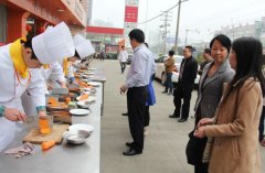 近日,南宁市好友缘国宴饭店到广西华南烹饪学校开展招聘面试会,大学路校区大厨122班的十多位学生参加了本次招聘会。 招聘刀工面试现场 好友缘国宴饭店,位于南宁市地标性建筑――南宁国际会展中心。继好友缘酒家后
