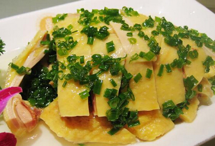 1.鸡腿洗净,放入滚水中煮熟,捞起,留下汤汁备用。