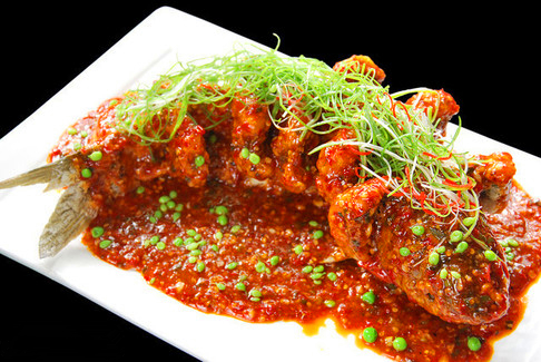 原料:武昌鱼一条、红椒一个、青椒一个、葱一段、姜2片、蒜半头、豆豉少许、豆瓣酱一勺、盐适量、糖一勺、醋一勺、白胡椒粉适量、淀粉适量、鸡精少许