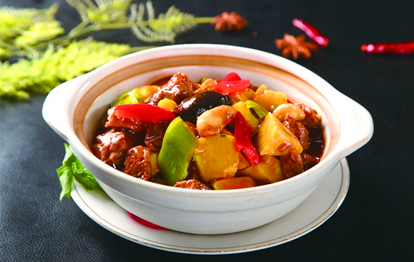 原料:牛肉1000g、土豆1个、胡萝卜1根、玉米1根、大葱、姜、小茴香、花椒、八角、桂皮、香叶、老抽、盐