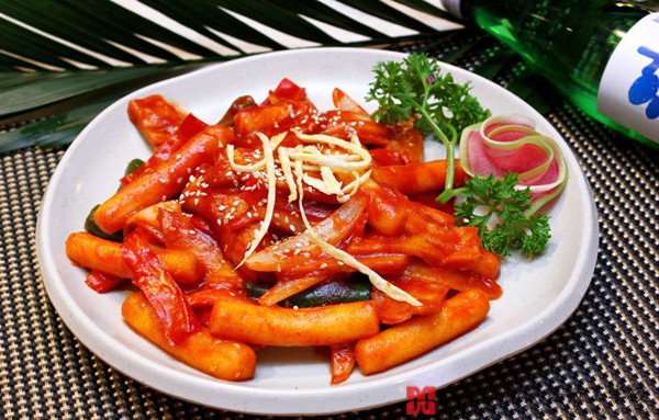 食材:年糕200克、辣白菜、葱、姜、食盐、酱油、白砂糖少许