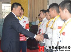 回顾2015,展望2016,广西华南烹饪学校涌现出许多优秀的学生。他们用行动证明了:梦想就是力量,奋斗终将优秀! 校长助理朱伟和同学们亲切握手 校长助理朱伟给同学们颁发荣誉证书 自治区奖学金颁奖 近日,广西华南烹