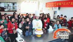 为了庆祝国际三八妇女节的到来,节日当天上午我校联合《当代生活报》举办西点制作观摩品尝活动,来自全市报名前50名《当代生活报》热心读者前来学习观摩。这次活动由西点班赵志权老师讲解和制作。 在大学路校区西点