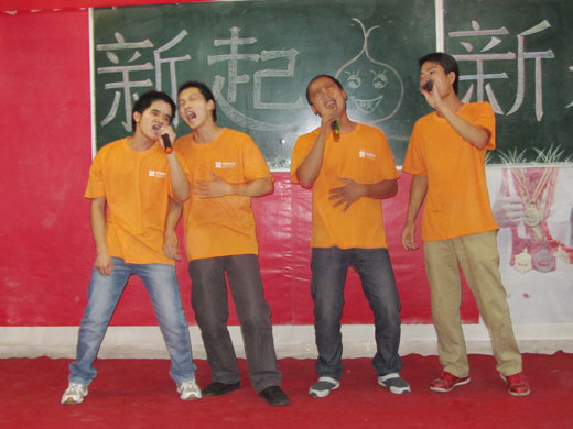 同学们精彩演唱 为增强广西华南烹饪学校同学们的集体意识,提高同学之间的协调能力,丰富我校的文艺活动,展示我校良好的精神风貌,同时也为了巩固提高同学们的爱国热情。我校于2011年9月26日19:00校教学楼前操场举