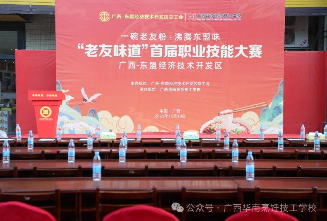 烟火蒸腾,香飘校园!12 月 19 日,广西华南烹饪技工学校东盟校区迎来了广西-东盟经济开发区"老友味道"首届职业技能大赛,一场以 “传承老友风味,竞技烹饪技艺” 为核心的赛事在此热烈展开。