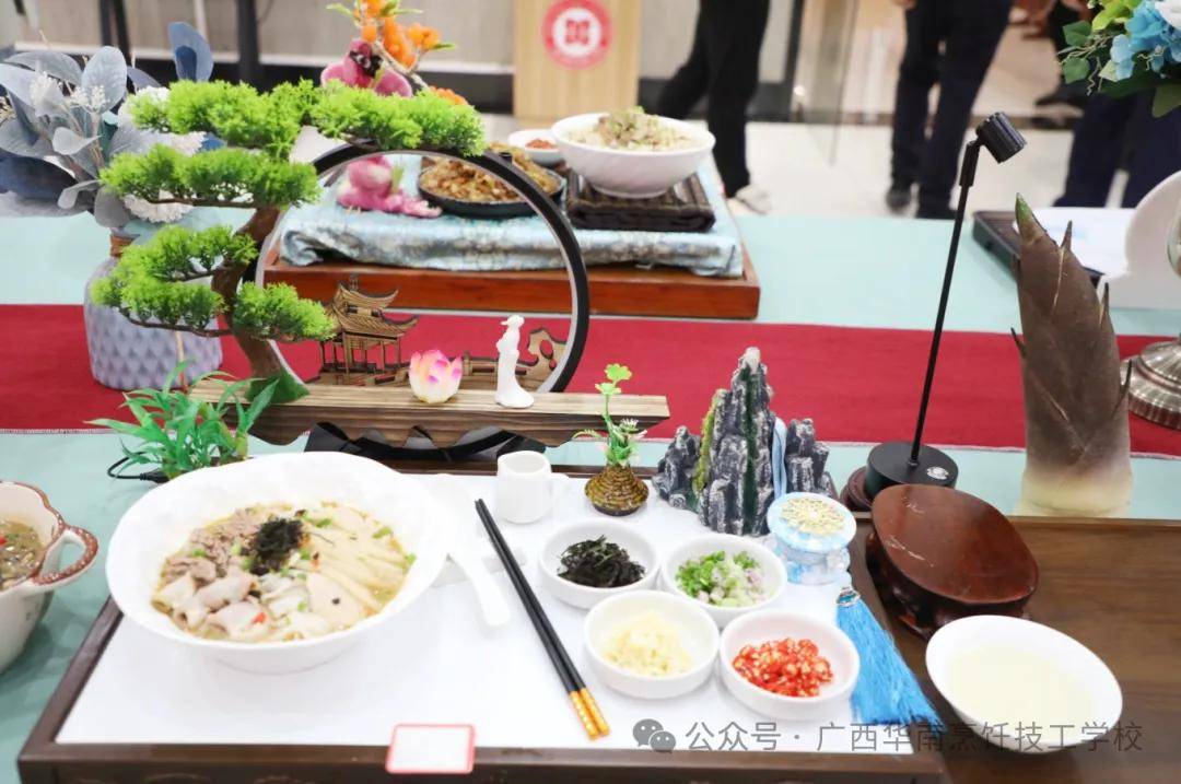 11 点 10 分比赛结束后,裁判与工作人员马不停蹄地完成成品评分、布置展示区;午后 12 点,颁奖典礼正式开启:广西华南烹饪技工学校校领导率先致辞,表达了对技能传承的重视;本次大赛裁判长、老友粉非遗传承人刘勇随后带来技术总结,肯定了选手们对老友味的创新演绎。