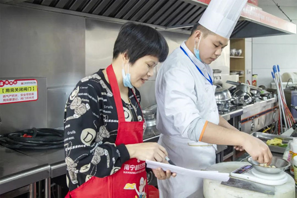 秦玉梅来自玉林博白,为了赚钱供孩子读书,已外出打工多年,如今为了陪伴长大的孩子,她选择回到家乡并在当地的一家火锅店的后厨工作,给厨师打打下手。工作了两个多月后,秦玉梅觉得工资不高,并非长久之计,看到火锅店生意火爆,于是萌生了学习火锅技术自己开店创业的想法。在网上通过搜索之后,了解到了广西华南烹饪学校,进行咨询了解后,便立即确定报名了我校的私人订制火锅课程。