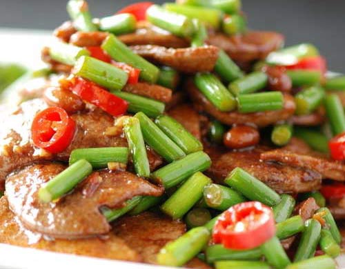 四、油量比平时炒菜稍微多一些过浆的猪肝,放油少的话容易糊锅。